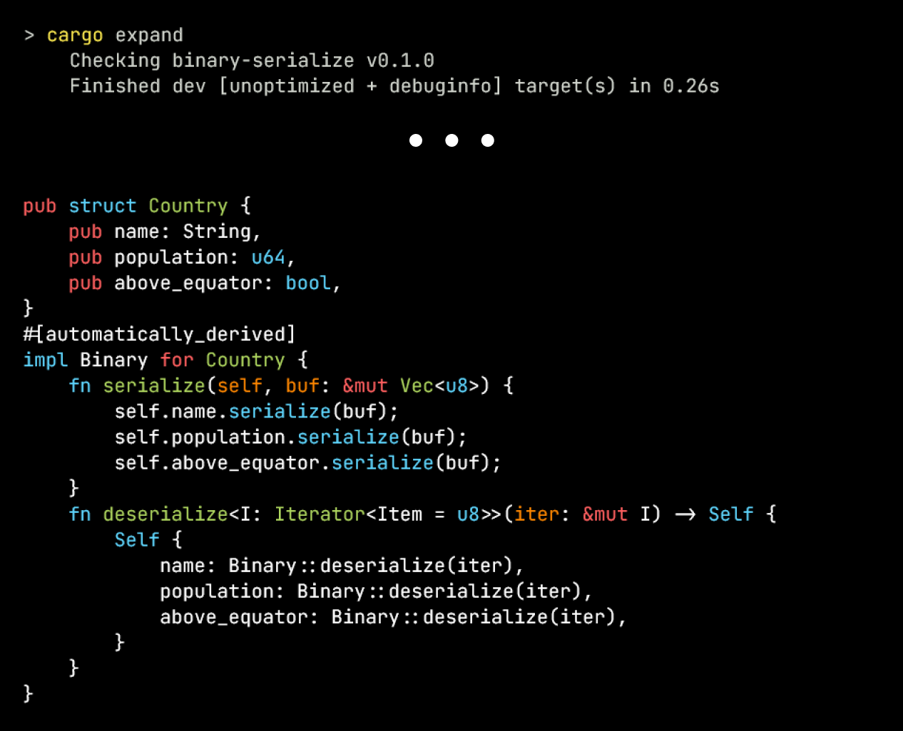 We can debug the output by installing cargo-expand (cargo install cargo-expand